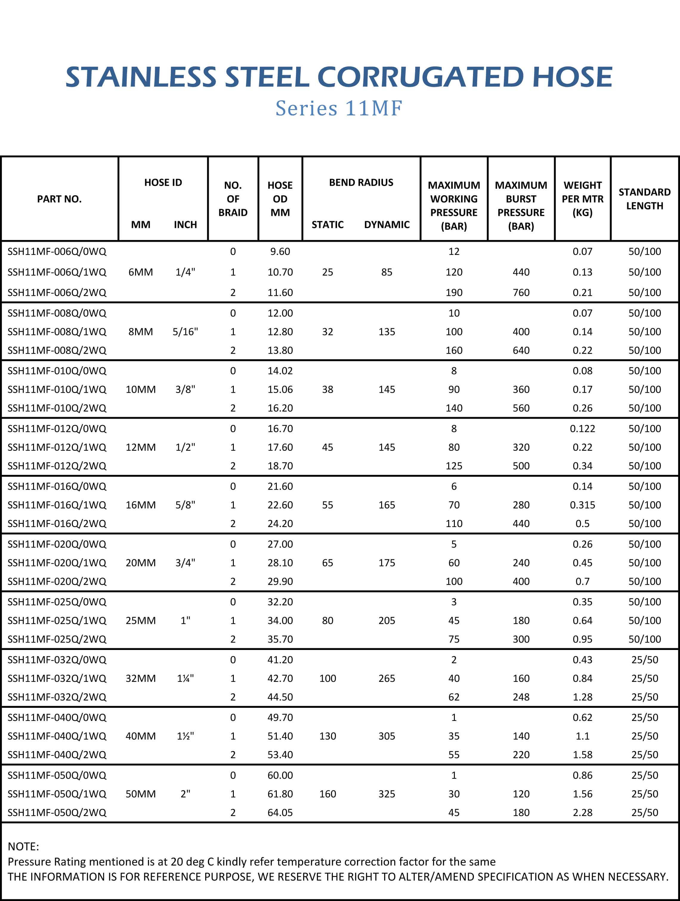 • Hose Grades: SS304,SS304L,SS316L,SS321